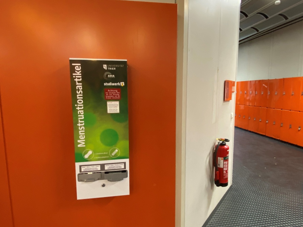 Aktuell hängen insgesamt acht Spender in den verschiedenen Gebäuden an frei zugänglichen und barrierefreien Standorten der Universität Trier. Zur Auswahl stehen Tampons oder Binden. Die Standorte wurden bewusst so ausgewählt, dass die Spender nicht im Zentrum des Geschehens hängen und doch im Blickfeld bleiben.